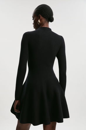 Bandage Figure Form Zip Detail Chiffon Sleeve Knit Dress