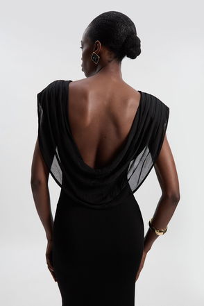 Viscose Blend Slinky Drape Plunge Back Knit Maxi Dress