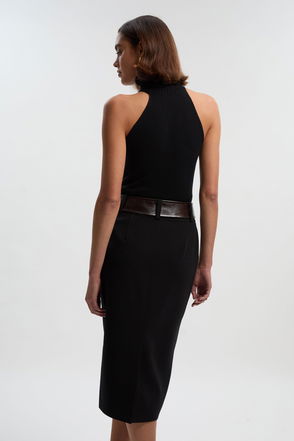Compact Stretch Pu Mix Belted Tailored Pencil Skirt