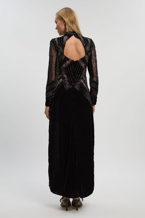 Velvet Embellished Long Sleeve Maxi Dress