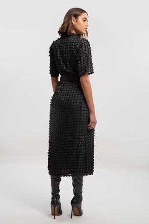 Textured Georgette With Satin Collared Shirt Midi Woven Dress
