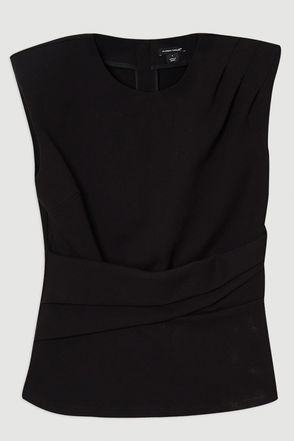 Ponte Ruched Waist Detail Round Neck Top