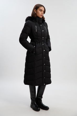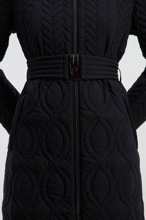 Multi Stitch Detail Belted Padded Midi Coat