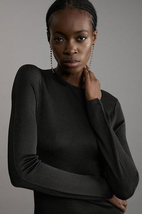 Viscose Blend Stud Detail Long Sleeve Knit Top