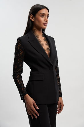 Compact Stretch Lace Mix Tailored Single Breasted Blazer