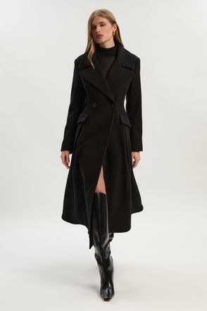 Wool Tailored Flared Skirt Midi Coat