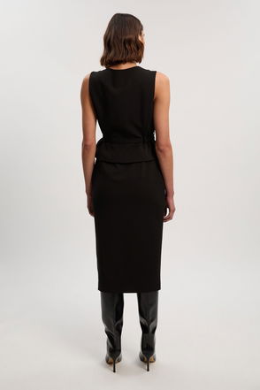 Boucle Tailored Tie Neck Satin Mix Midi Dress