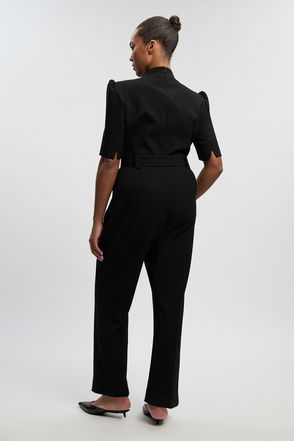 Structured Crepe Forever Notch Neck Belted Tailored Jumpsuit