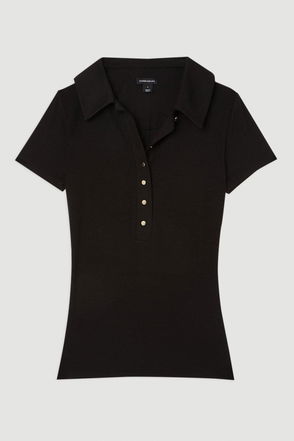 Viscose Rib Jersey Short Sleeve Collared Top
