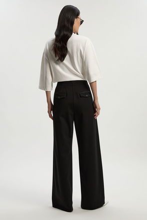 Compact Stretch Pocket Detail Tailored Wide Leg Trouser