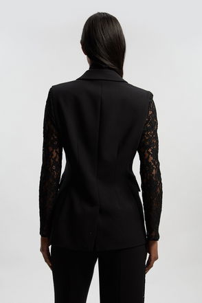 Compact Stretch Lace Mix Tailored Single Breasted Blazer