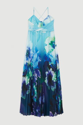 Ombre Floral Soft Pleated Woven Strappy Maxi Dress
