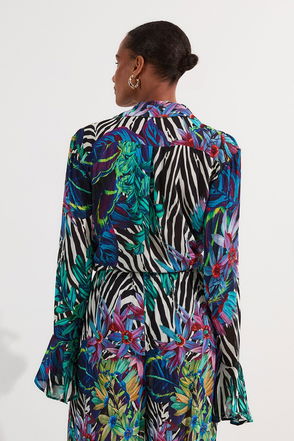 Animal Print Georgette Embellished Woven High Neck Cape Blouse