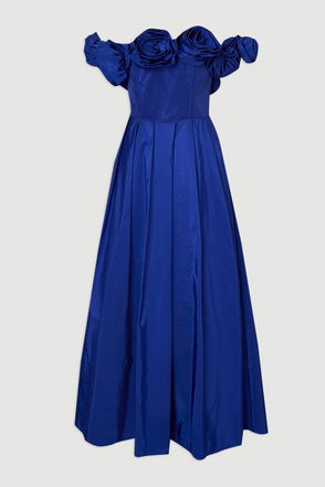 Drama Taffeta Rosette Woven Maxi Prom Dress