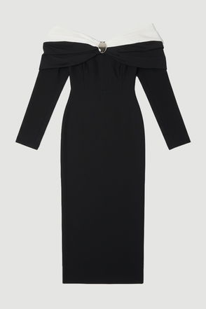 Velvet And Jacquard Contrast Strappy Tailored Midi Dress