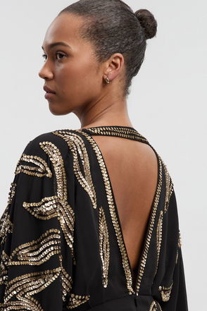 Lily Macrae Cold Shoulder Embellished Woven Maxi Dress