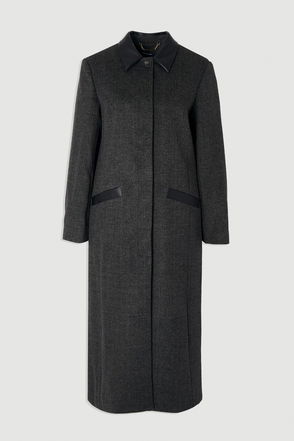 Brushed Wool Check Pu Mix Tailored Midi Coat