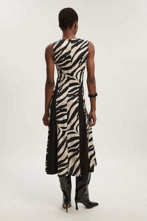 Zebra Print Crepe Crepe Pleated Maxi Dress