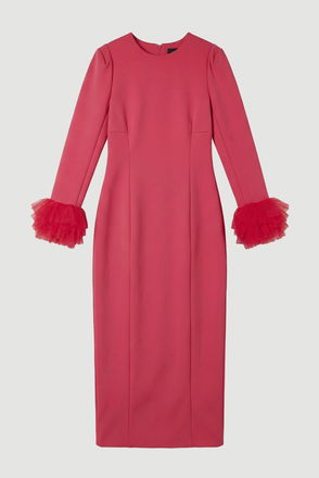 Scuba Drama Tulle Detail Cuff Woven Midi Dress