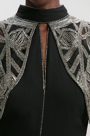Crystal Embellished Cutwork Cape Detail Woven Maxi Dress