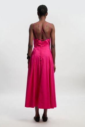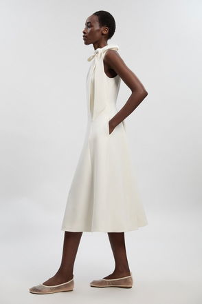 Compact Stretch Bow Tie Neck Full Skirted Midi Dress