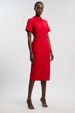 Compact Stretch Tipped Tab Detail Tailored Pencil Dress