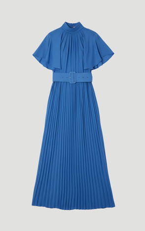 Satin Drape Georgette Cape Detail Midi Dress