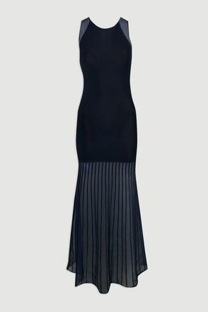 Sleeveless Viscose Blend Knitted Dress With Sparkle Sheer Details
