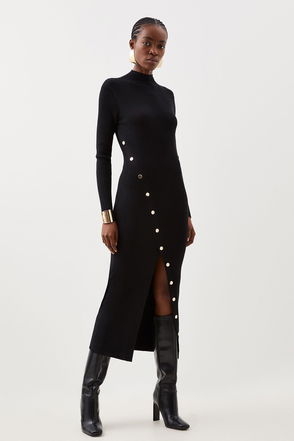 Viscose Blend Popper Detail Split Knit Midi Dress