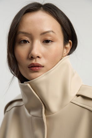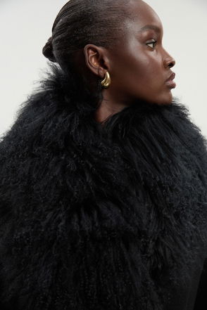 Shearling & Leather Tipped High Neck Coat