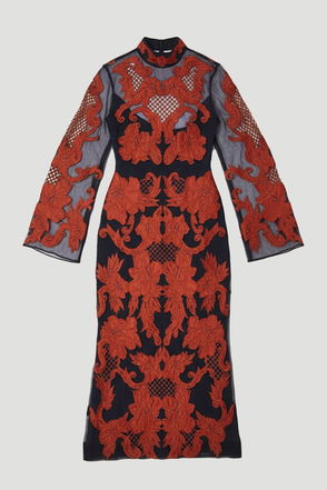 Petite Baroque Embroidered Cape Sleeve Woven Twill Top