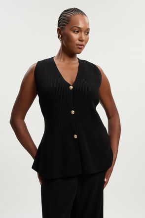 Plus Size Ribbed Cotton Knitted Waistcoat