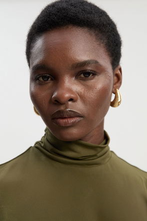 High Neck Jersey Crepe Maxi Dress