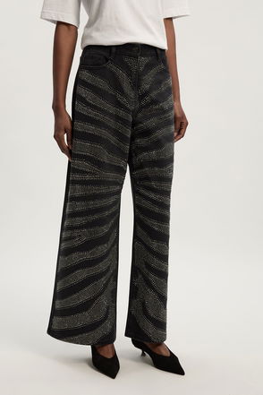 Denim Zebra Printed Hotfix Wide Leg Jeans