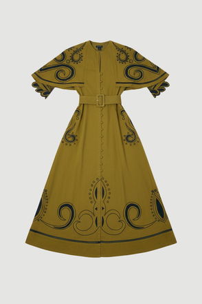 Plus Size Baroque Embroidered Cape Sleeve Twill Woven Maxi Dress