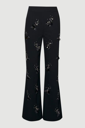 Cluster Sequin & Crystal Embellished Tailored Wide Leg Trouser