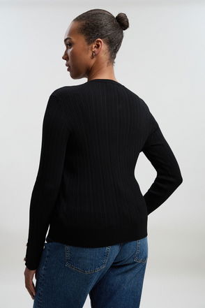 Plus Size Military Trim Rib Long Sleeve Knit Top