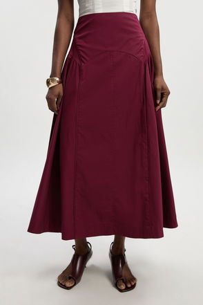 Pleated Detail Cotton Woven Maxi Skirt
