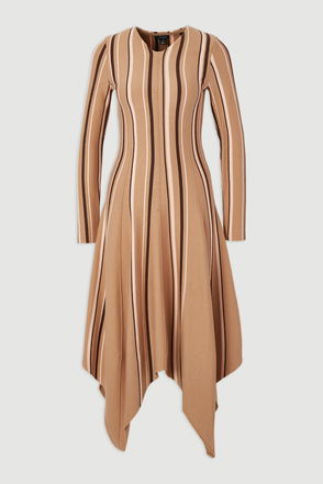 Stripe Viscose Blend Asymmetric Hem Knit Midi Dress