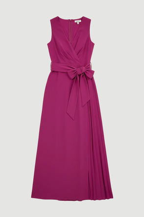 Soft Tailored Colour Block Pleated Side Sleeveless Midi Dress