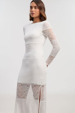 Pleated Detail Cotton Long Sleeve Woven Midi Dress