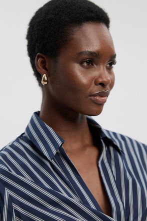 Plus Size Bold Stripe Cotton Woven Utility Shirt