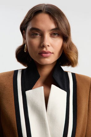 Brushed Wool Colour Block Tailored Belted Midi Coat