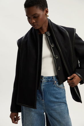 Brushed Wool Pu Mix Detachable Scarf Tailored Crop Coat