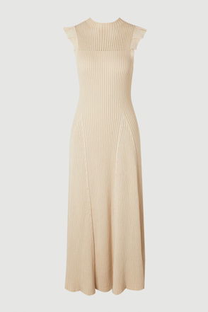 Viscose Blend Rib Knit Chiffon Sleeve Midi Dress