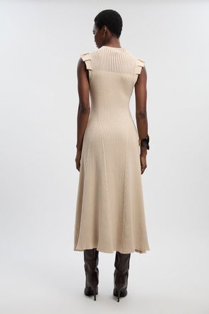 Knitted Midi Dress With PU Detailing