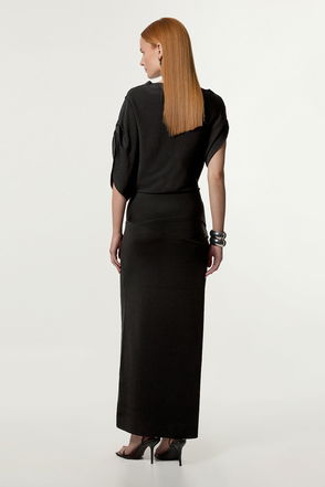 High Neck Jersey Crepe Maxi Dress