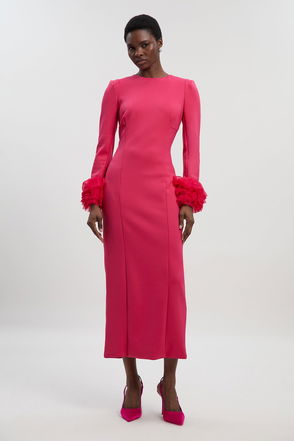 Scuba Drama Tulle Detail Cuff Woven Midi Dress