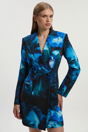 Lily Macrae Polished Tailored Print Double Breasted Blazer Mini Dress