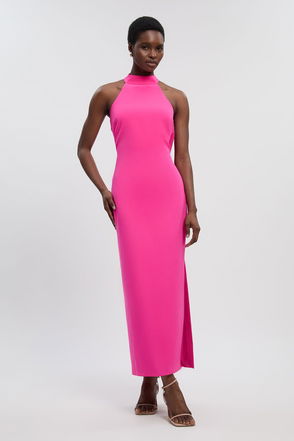 Soft Tailored Halter Neck Open Back Maxi Dress